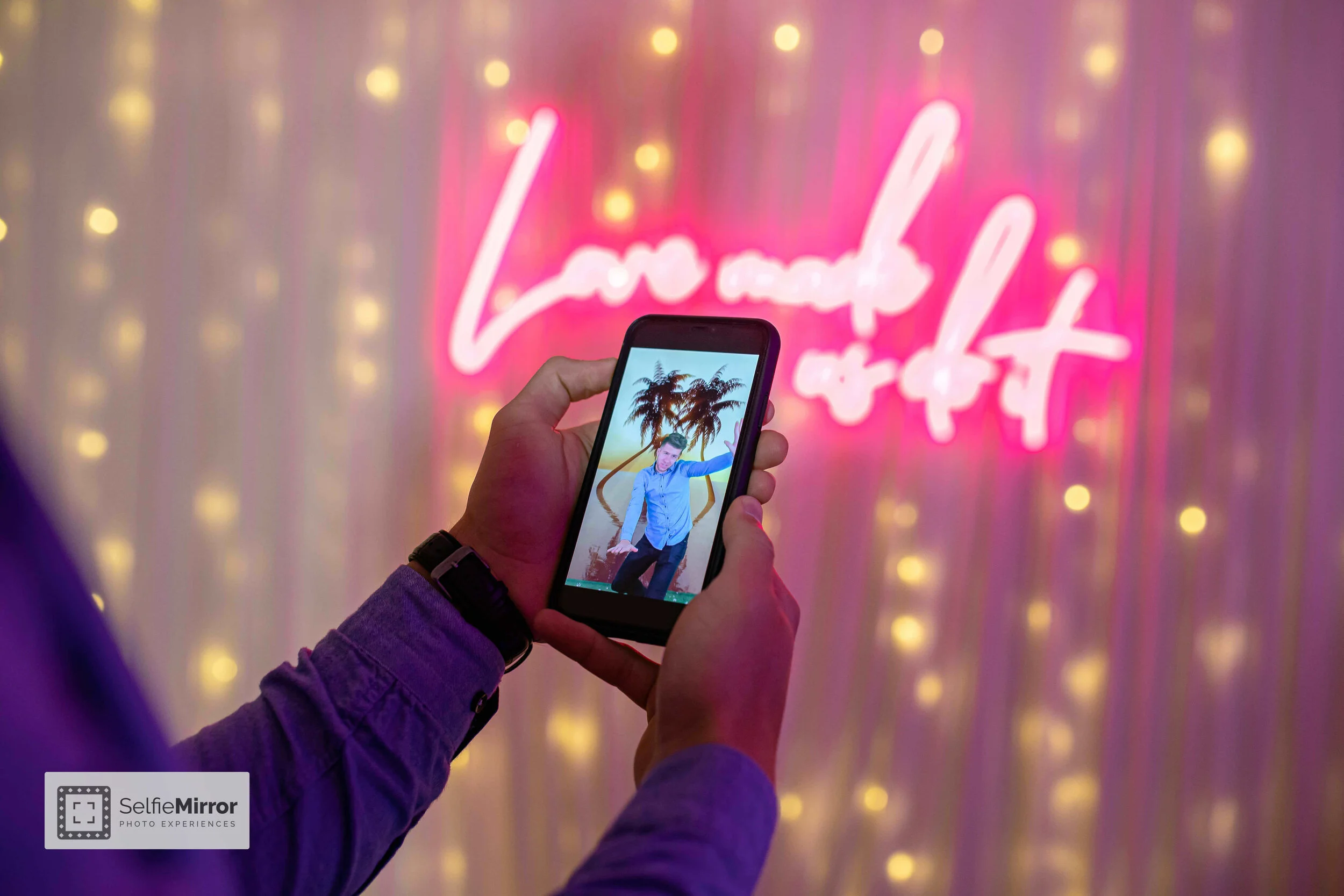 If you’re having an in-person event, you can still make sure the entertainment is fun and safe for everyone! Booking a photo booth is a great way to keep guests entertained for hours on end. Even better, guests come away with fun photo keepsakes to remind them of the great memories they made. Selfie Mirror now has a touch-free option, so that guests do not have to touch the screen to start the photo experience. Guests can simply scan the QR code shown on the Mirror to start capturing hilarious selfies. If props and accessories are being used, your Selfie Mirror host will be there to wipe down the props after every use.